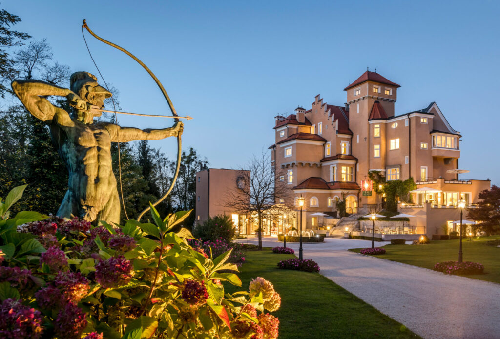 Auf dem Mönchsberg gelegen, ist Schloss Mönchstein eine der exklusivsten Locations für eine Schlosshochzeit in Salzburg. Die erhöhte Lage über der Stadt bringt euch einen richtig guten Panoramablick über die Dächer der Mozartstadt und absolute Ruhe. Kein Publikumsverkehr, keine anderen Gäste, die vorbeischlendern. Das historische Anwesen verbindet aristokratisches Flair mit Fünf-Sterne-Luxus und passt besonders gut, wenn ihr eine intime, wirklich private Feier möchtet.